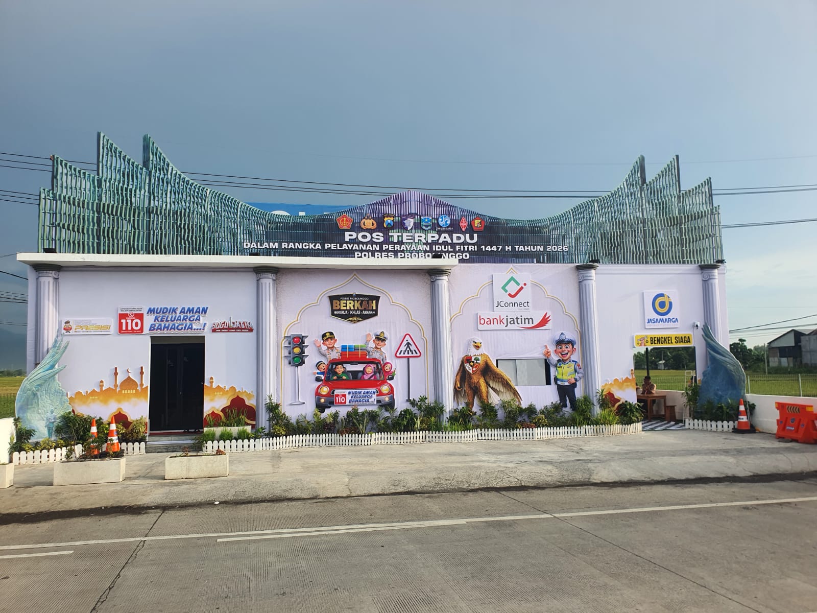 Seperti halnya Pos Terpadu di gerbang Tol Kraksaan Probolinggo yang dibangun oleh Polres Probolinggo Polda Jatim dengan design miniatur Ibu Kota Nusantara (IKN).